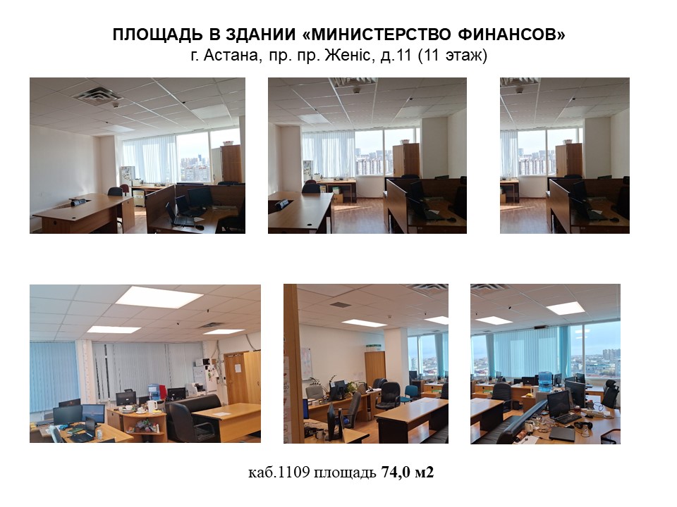 Недвижимость (Помещение в здании) Площадь (74,0м2) в здании Министерство финансов (пр. Женис, 11), офисное, имеются все коммуникации, встроено-пристроенная часть Астана г.а., Сарыарка р.а., -